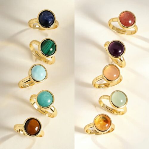 Natural crystal semi precious stone ring round copper gold-plated simple adjustable ring